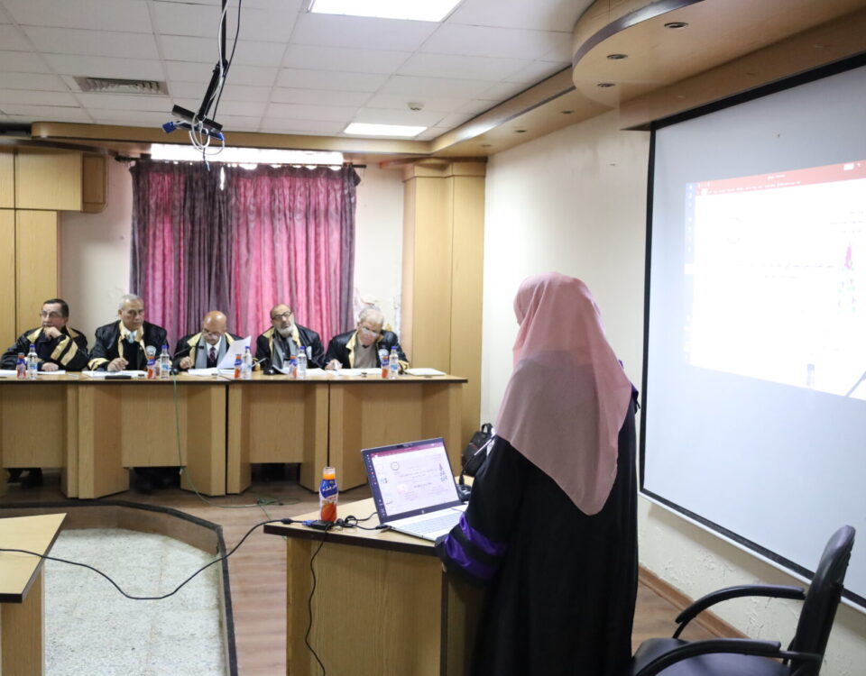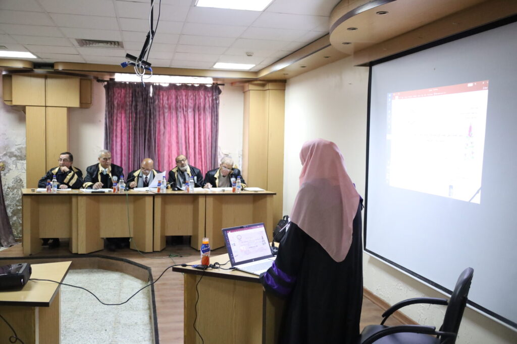 تألفت #لجنة_الحكم_والمناقشة من #السادة_الدكاترة: معد النجار عضواً، منتجب الحسن عضواً، مصطفى حسن مشرفاً، نبيل علي عضواً، أحمد الجاعور عضواً .