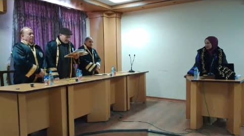 تألفت لجنة الحكم والمناقشة من السادة الدكاترة: حمزة حاكمي عضواً ومشرفاً، نور رضوان عضواً، سوسن السطايحي عضواً.