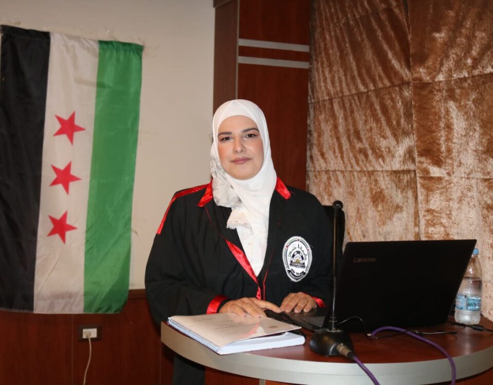تألفت لجنة الحكم والمناقشة من السادة الدكاترة: منال مرسي رئيساً، عتاب قندرية مشرفا، هبة شاويش عضواً.