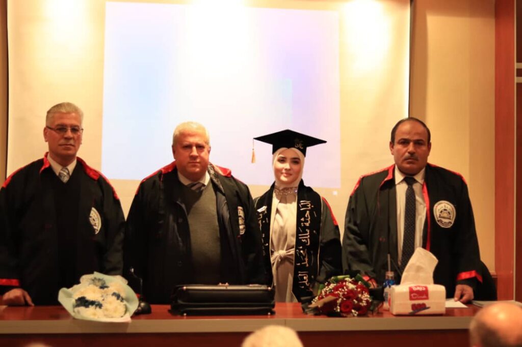 تألفت لجنة الحكم والمناقشة من السادة الدكاترة: محسن عبود مشرفاً ،ديمة شاهين عضواً، نصر عبدالحميد عضواً.