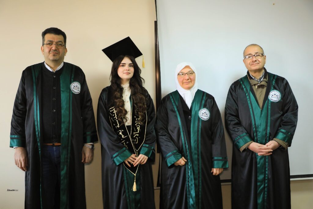 وفي نهاية المناقشة تم منح الباحثة لمى أحمد الخاني درجة الماجستير في هندسة النسيج ومعالجاته بتقدير امتياز وعلامة قدرها 91.33 %.