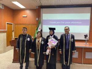 وفي نهاية المناقشة تم منح الباحثة سوسن حمود درجة الماجستير في الطب البشري بتقدير امتياز.