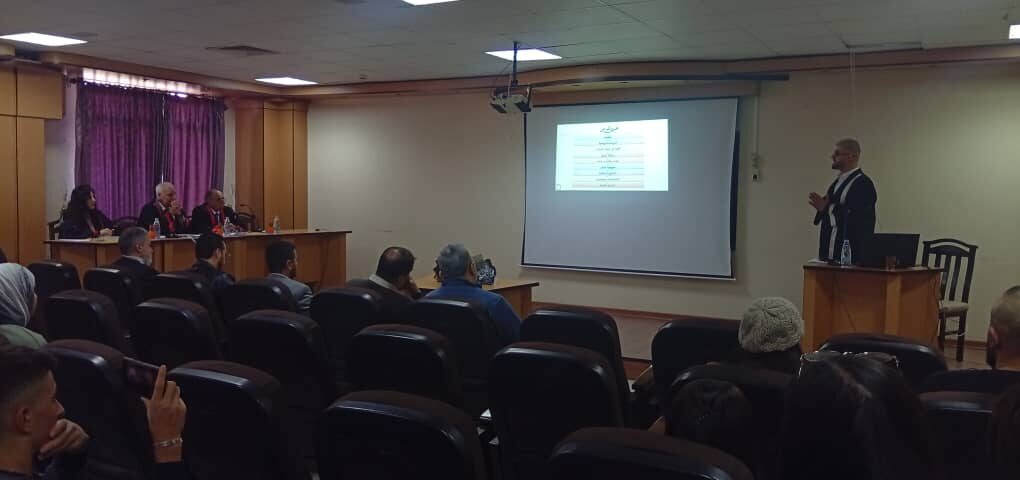 تألفت لجنة المناقشة من السادة الدكاترة :أحمد ابراهيم، نعيم بشيش، عبير المكائيل.
