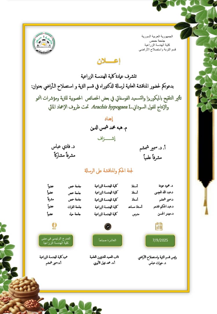 أخبار عامةإعلاناتشريط الأخبارمناقشات ماجستير ودكتوراه مناقشة رسالة دكتوراه للطالبة هبه محمد شمس الدين الأثنين 9 ربيع الأول 1447هـ 1-9-2025م 1٬840 الأثنين 9 ربيع الأول 1447هـ 1-9-2025م 1٬840