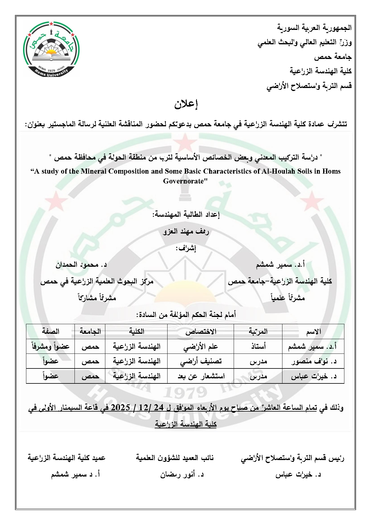 أخبار عامةإعلاناتشريط الأخبارمناقشات ماجستير ودكتوراه مناقشة رسالة ماجستير للطالبة رهف مهند العزو 17 ديسمبر، 2025 171 17 ديسمبر، 2025 171