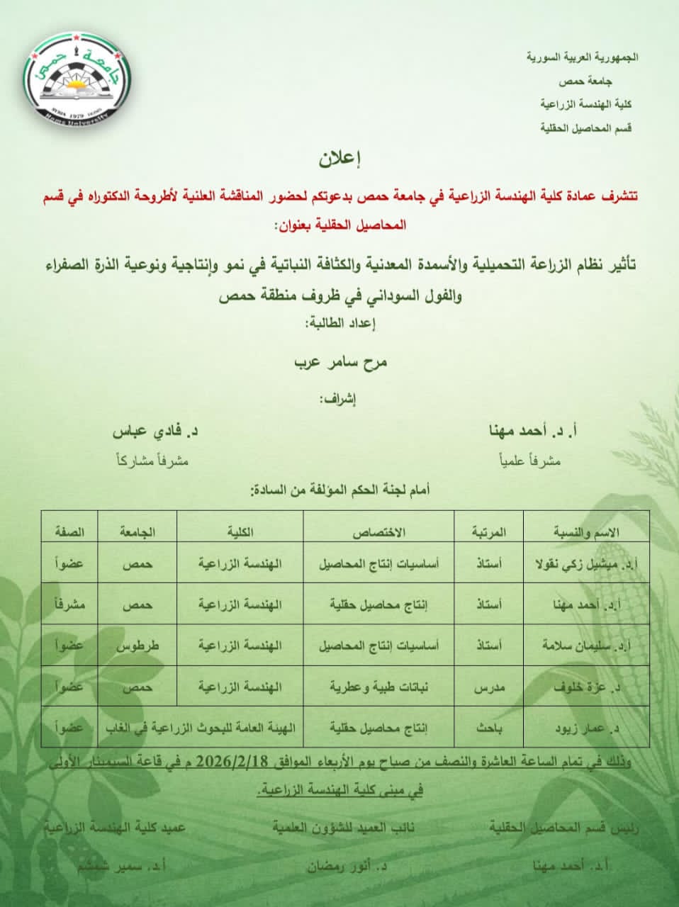 أخبار عامةإعلاناتشريط الأخبارمناقشات ماجستير ودكتوراه مناقشة رسالة دكتوراه للطالبة مرح سامر عرب 15 فبراير، 2026 356 15 فبراير، 2026 356