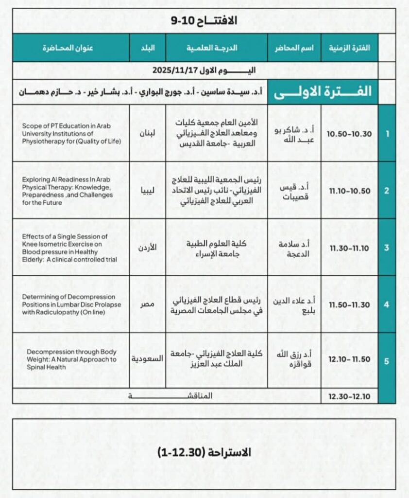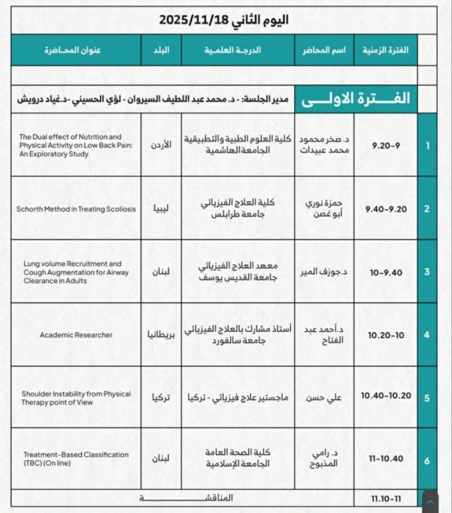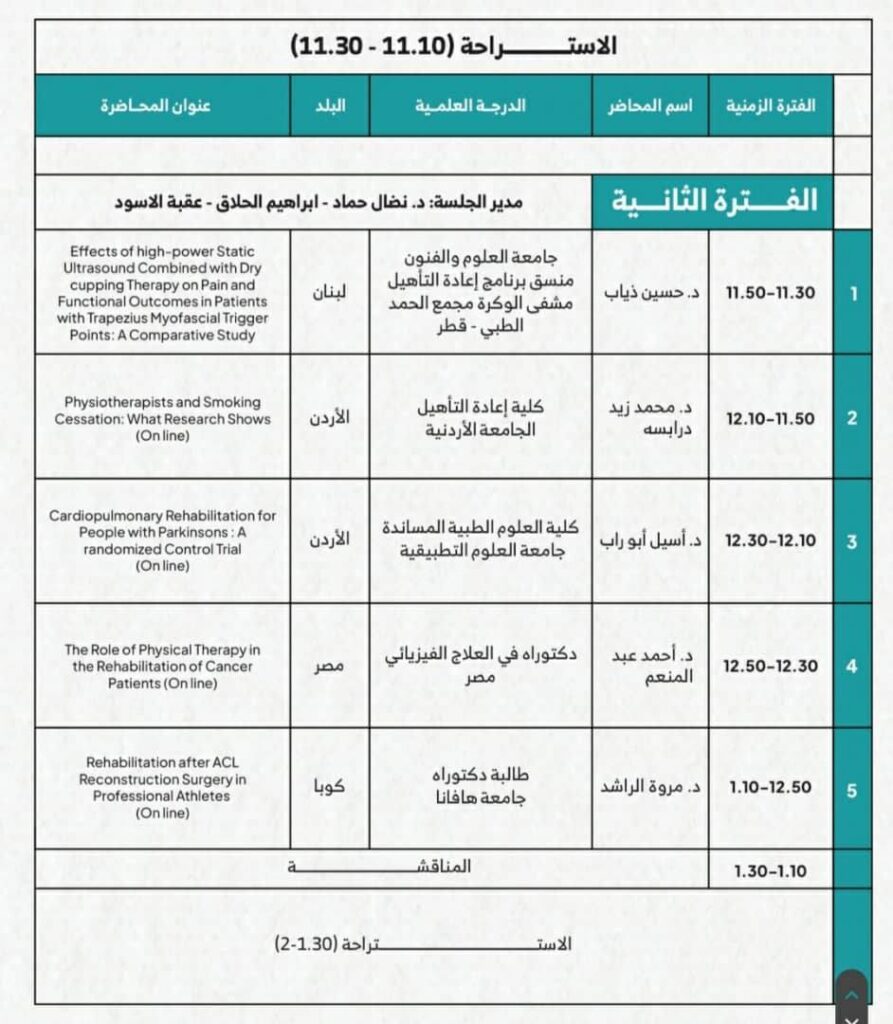 - المؤتمر العلمي الدولي الثاني للعلاج الفيزيائي تحت عنوان (نحرّك الحياة من جديد) – كلية العلوم الصحية