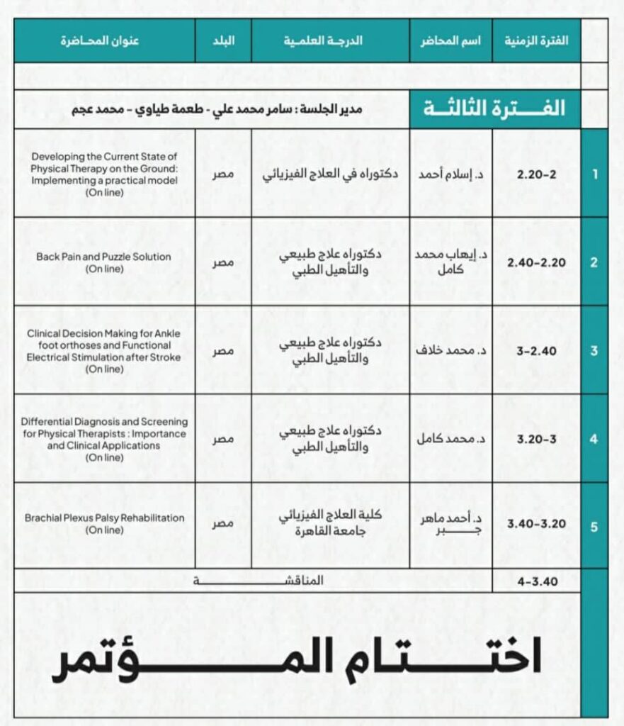 - المؤتمر العلمي الأول للمعالجة الفيزيائية في الفترة 7-8 /2022/9