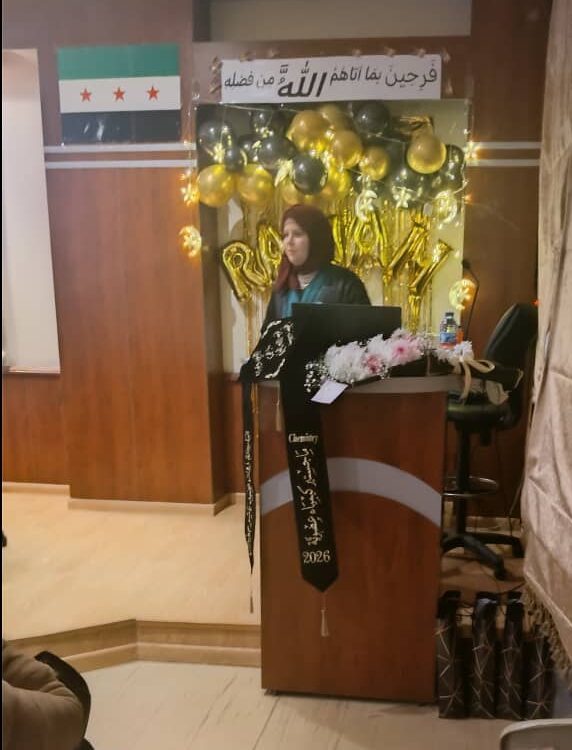 At the end of the discussion, the researcher Duaa Muhammad Al hussein was awarded a master’s degree in pharmaceutical chemistry and pharmacological monitoring, with distinction and a mark 96%.