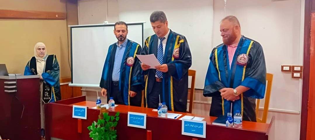 At the end of the discussion, the researcher Rifaat Basem Al-Ahmed was awarded a master’s degree with distinction.