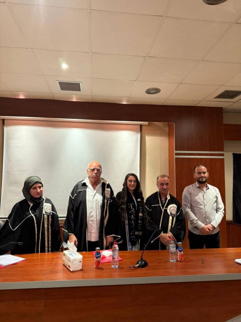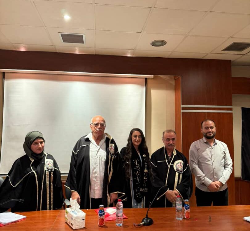 At the end of the discussion, the researcher Ghufran Nasser Al-Kurdi was awarded a master’s degree in organic chemistry with a very good grade.