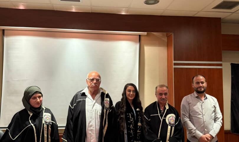 At the end of the discussion, the researcher Nisreen Girgis Demian was awarded a master’s degree in inorganic chemistry with a very good grade.