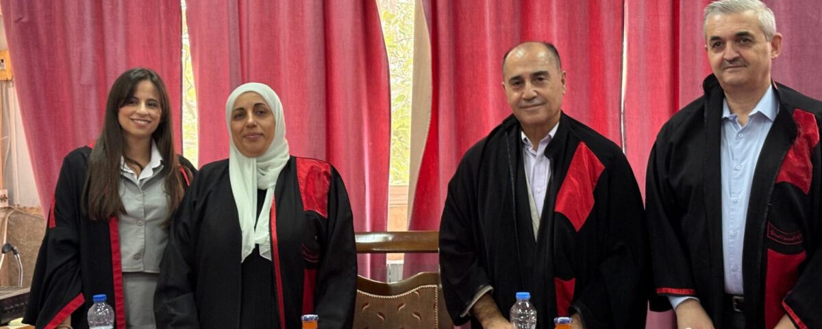 At the end of the discussion, Awarding researcher Reem Zakhour Hanoush a master’s degree in civil engineering with a very good grade.