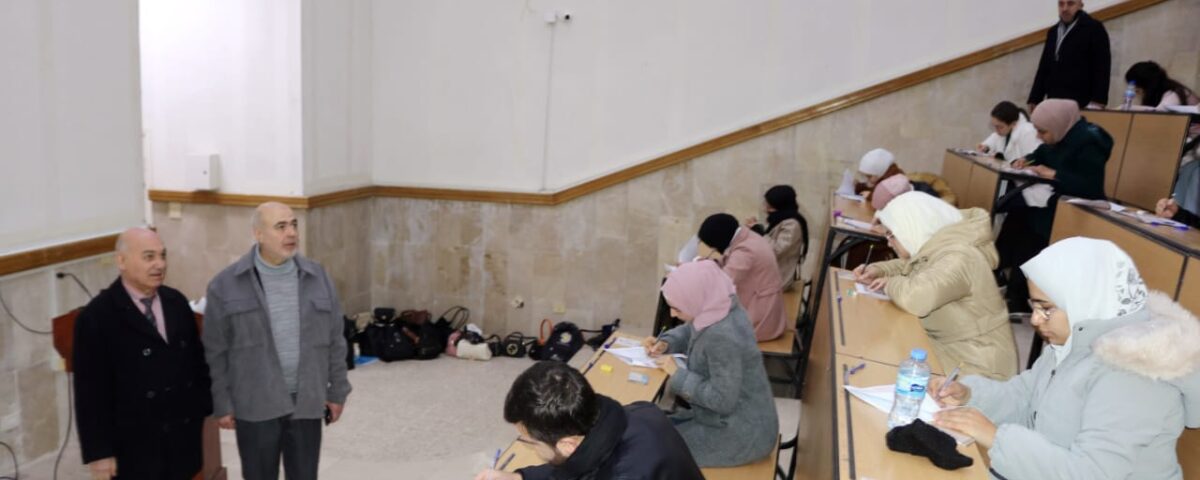 The university Vice-President for Scientific Affairs, Prof. Waleed Khaddam, and the Dean of the Faculty of Medicine, Prof. Talal Habboush, inspected the second session of the unified medical exam conducted by the National Authority for Quality Assurance and Accreditation at Homs University center.