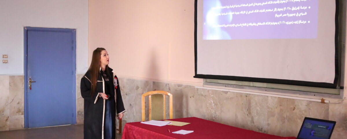 A master thesis entitled “The role of artificial intelligence in improving the quality of tourist facilities ( A field study on a sample of tourism services in the coastal area) was discussed by the researcher Marah Haithm Saleh at the Faculty of Tourism,