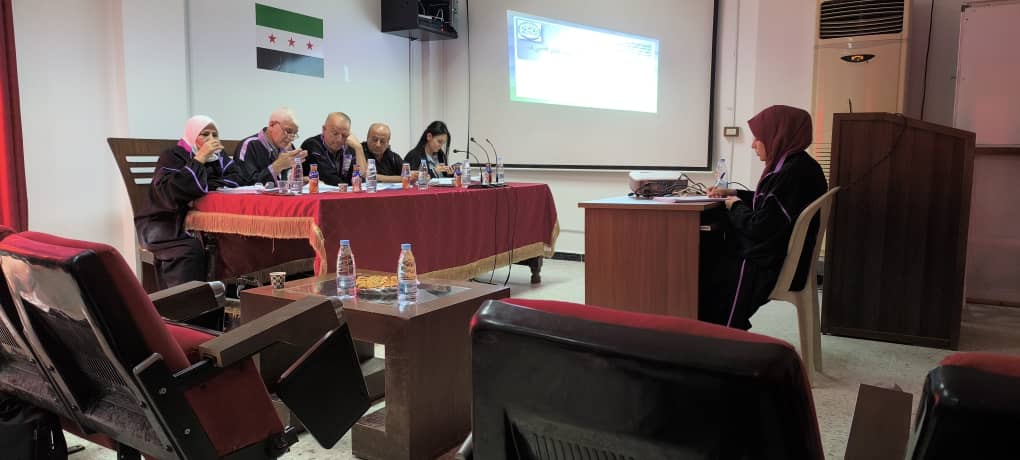 En présence du rectreur de l’Université de Homs, Prof. Tarek HOUSSAM ELDEEN, et son vice-recteur, Prof. Mohammad MASRI, la chercheuse Iman Ahmad HUSSEIN, de la Faculté des Sciences, a soutenu sa thèse de doctorat en mathématiques sous le thème : (Etude de la stabilité de la solution d’un ensemble d’équations aléatoires fractionnels) sous l’encadrement du Prof. Sameh ALARJA.