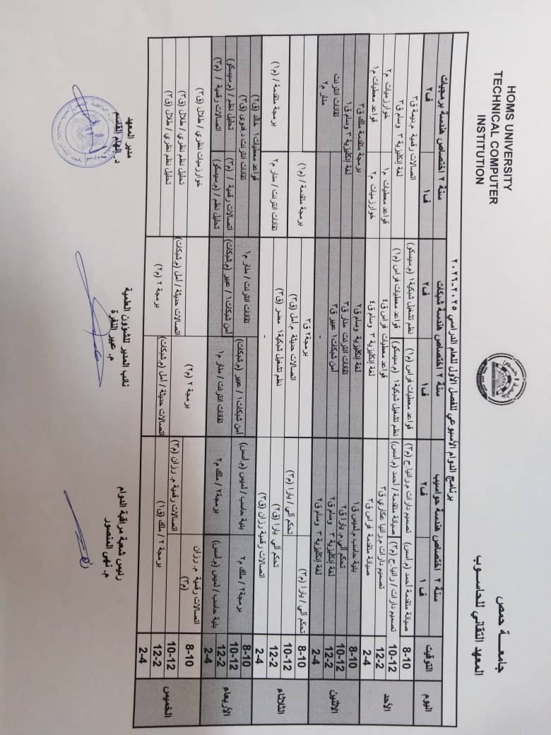 - تحديد مواعيد المناقشة المرحلية لمشاريع تخرج قسم هندسة الشبكات
