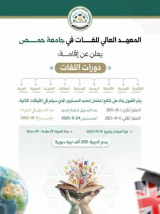 - الاعلان عن دورة للغات في المعهد العالي للغات في جامعة حمص