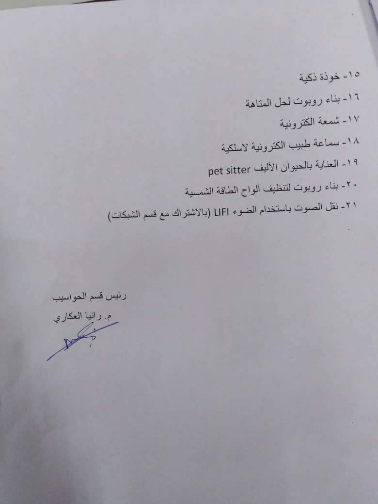 - اعلان الى طلاب السنة الثانية قسم حواسيب (أفكار مشاريع تخرج للعام الدراسي2025/2026)