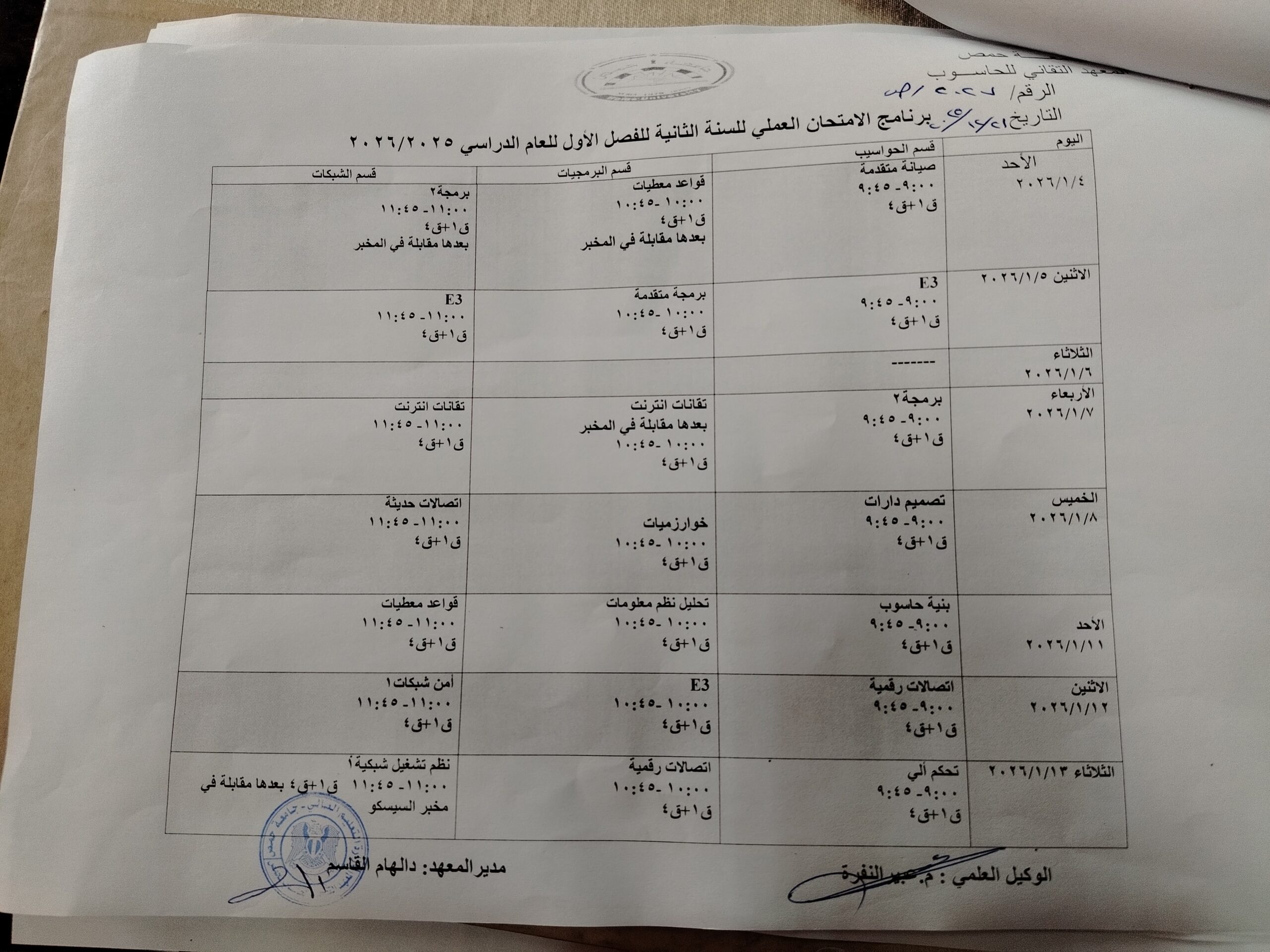 أخبار معهد الحاسوببرنامج الإمتحانات اعلان برنامج امتحان العملي لطلاب السنة الثانية الفصل الأول للعام الدراسي ٢٠٢٥/٢٠٢٦ طلاب المعهد التقاني للحاسوب 21 ديسمبر، 2025 256 21 ديسمبر، 2025 256