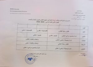 أخبار معهد البادية والتصحربرنامج الدوام الاسبوعي إعلان مشروع برنامج الدوام الاسبوعي للفصل الثاني من العام الدراسي 2025-2026 طلبة المعهد السنة الأولى والثانية 19 فبراير، 2026 236 19 فبراير، 2026 236