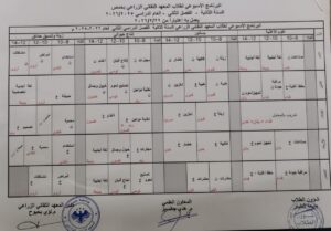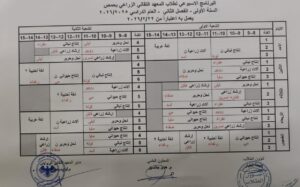يعلن المعهد التقاني الزراعي عن صدور برنامج الدوام الأسبوعي للفصل الدراسي الثاني للسنة الأولى والثانية لكافة الأقسام