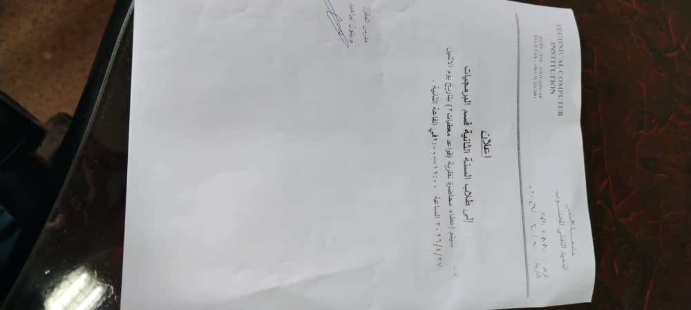 أخبار معهد الحاسوبإعلانات هامة اعلان(محاضرة تعويضية/قواعد معطيات 2 ) لطلاب السنة الثانية قسم برمجيات طلاب المعهد التقاني للحاسوب 20 أبريل، 2026 59 20 أبريل، 2026 59