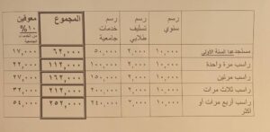ملاحظة: الرسوم الجامعية مرفقة بالاعلان