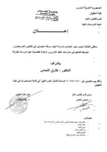 أخبار عامةشريط الأخبار إعلان إجراء جلسة مدارسة إنهاء رسالة الماجستير في قسم القانون العام للطالبة سلوى منير الحمدان الأثنين 19 جمادى الأولى 1447هـ 10-11-2025م 116 الأثنين 19 جمادى الأولى 1447هـ 10-11-2025م 116