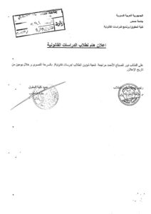 أخبار عامةإعلاناتشريط الأخبار اعلان هام للطالب نور الصباح الاحمد /الدراسات القانونية / التعليم المفتوح الأربعاء 28 جمادى الأولى 1447هـ 19-11-2025م 347 الأربعاء 28 جمادى الأولى 1447هـ 19-11-2025م 347