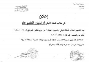 أخبار عامةإعلاناتشريط الأخبار اعلان هام لطلاب السنة الاولى الراسبين/التعليم العام الأحد 2 جمادى الآخرة 1447هـ 23-11-2025م 273 الأحد 2 جمادى الآخرة 1447هـ 23-11-2025م 273