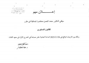 أخبار عامةشريط الأخبار محاضرة اضافية في مقرر القانون الدستوري الثلاثاء 4 جمادى الآخرة 1447هـ 25-11-2025م 231 الثلاثاء 4 جمادى الآخرة 1447هـ 25-11-2025م 231