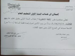 أخبار عامةبرنامج الدوام الاسبوعيشريط الأخبار إعلان هام إلى طلاب السنة الأولى/ التعليم العام الأحد 23 جمادى الآخرة 1447هـ 14-12-2025م 172 الأحد 23 جمادى الآخرة 1447هـ 14-12-2025م 172