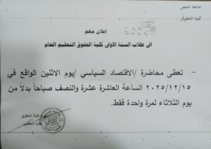 أخبار عامةبرنامج الدوام الاسبوعيشريط الأخبار إعلان هام لطلاب السنة الأولى/ التعليم العام الأحد 23 جمادى الآخرة 1447هـ 14-12-2025م 193 الأحد 23 جمادى الآخرة 1447هـ 14-12-2025م 193