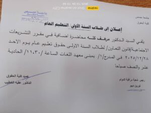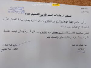 أخبار عامةبرنامج الدوام الاسبوعيشريط الأخبار اعلانات هامة لطلاب السنه الاولى/ التعليم العام 24 ديسمبر، 2025 748 24 ديسمبر، 2025 748