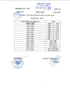 .أخبار النتائج الإمتحانيةأخبار عامةشريط الأخبار توزيع الطلاب على القاعات الامتحانيه في مقرر /منظمات/ ليوم 2/2/2026 1 فبراير، 2026 379 1 فبراير، 2026 379