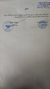 اعلان للطالب سليمان شقوف بن علي