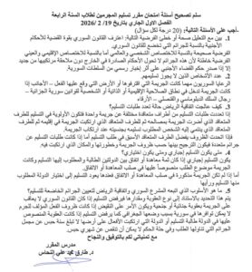 أخبار عامةشريط الأخبار سلالم تصحيح مقررات تسليم مجرمين وعقوبات اقتصاديه لطلاب السنة الرابعة 19 فبراير، 2026 1٬045 19 فبراير، 2026 1٬045