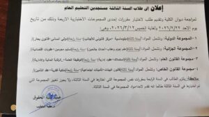 أخبار عامةشريط الأخبار اعلان هام لطلاب السنة الثالثة مستجدين 20 فبراير، 2026 1٬366 20 فبراير، 2026 1٬366