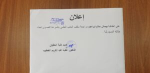 اعلان هام للطالبة بيسان حاتم ابراهيم