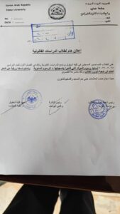 اعلان هام للطالبة لبانة محمد رقمها الجامعي15056