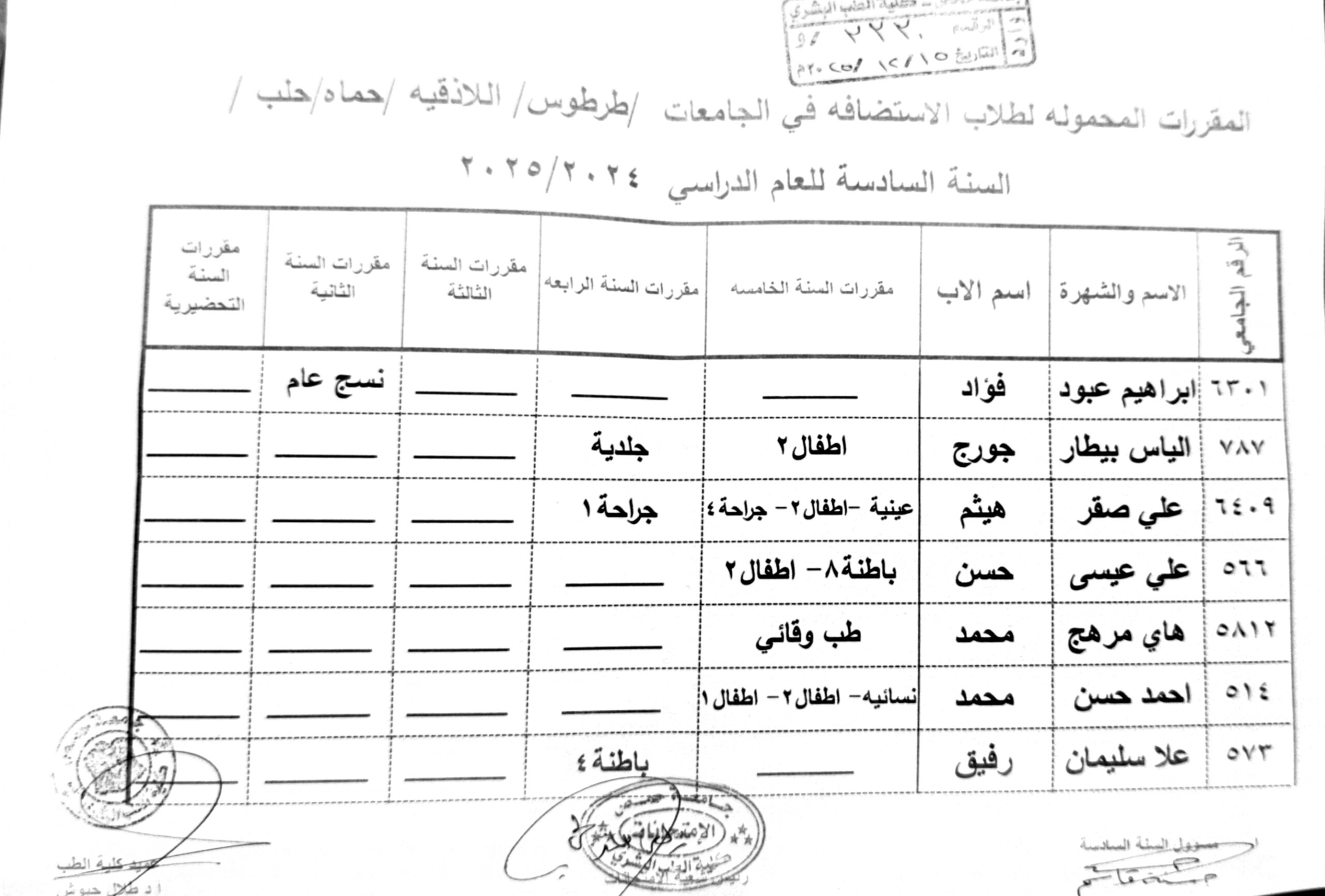 أسماء الطلاب المتقدمين بطلب إعادة العملي للفصل الأول من العام الدراسي 2026/2025