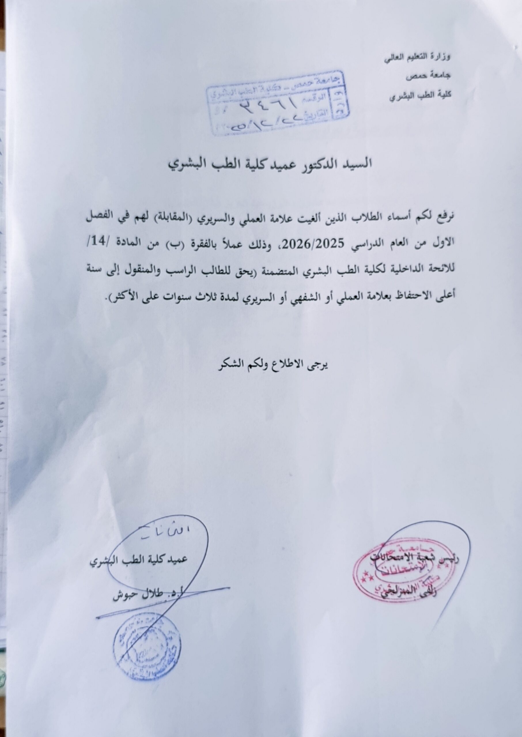 .أخبار عامةإعلان هامإعلانات أسماء الطلاب الذين ألغيت علامة العملي لهم في الفصل الدراسي الأول للعام 2026/2025 23 ديسمبر، 2025 686 23 ديسمبر، 2025 686
