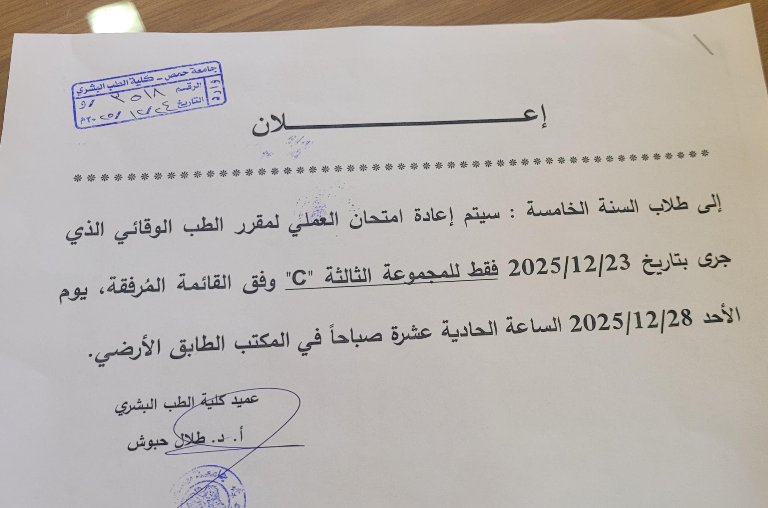 إعلان إلى طلاب السنة السادسة المستضافين في الجامعات الأخرى