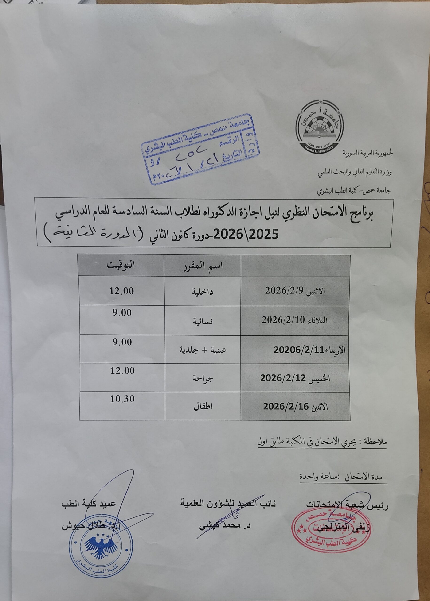 إعلان هامإعلاناتبرنامج الامتحانات برنامج الامتحان النظري للدكتوراه للعام الدراسي 2025-2026 لطلاب السنة السادسة دورة كانون الثاني(الدورة الثانية) 21 يناير، 2026 544 21 يناير، 2026 544