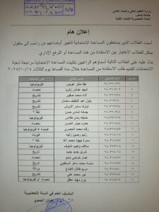 يرجى مراجعة شعبة الامتحانات لتقديم طلب الاستفادة من المساعدة خلال مدة أقصاها يوم الثلاثاء 14/10/2025