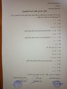 توزيع الطلاب على الفئات لحضور جلسات العملي لطلاب السنة التحضيرية