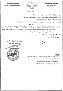 قرار مجلس التعليم العالي رقم 26/ تاريخ 2/11/2025 المتضمن الموافقة على تغيير و تعديل عناوين الأبحاث لطلاب الدراسات العليا الذين أعيد ارتباطهم وفقاً للمرسومين /95/ و /98/ تاريخ 15/6/2025.