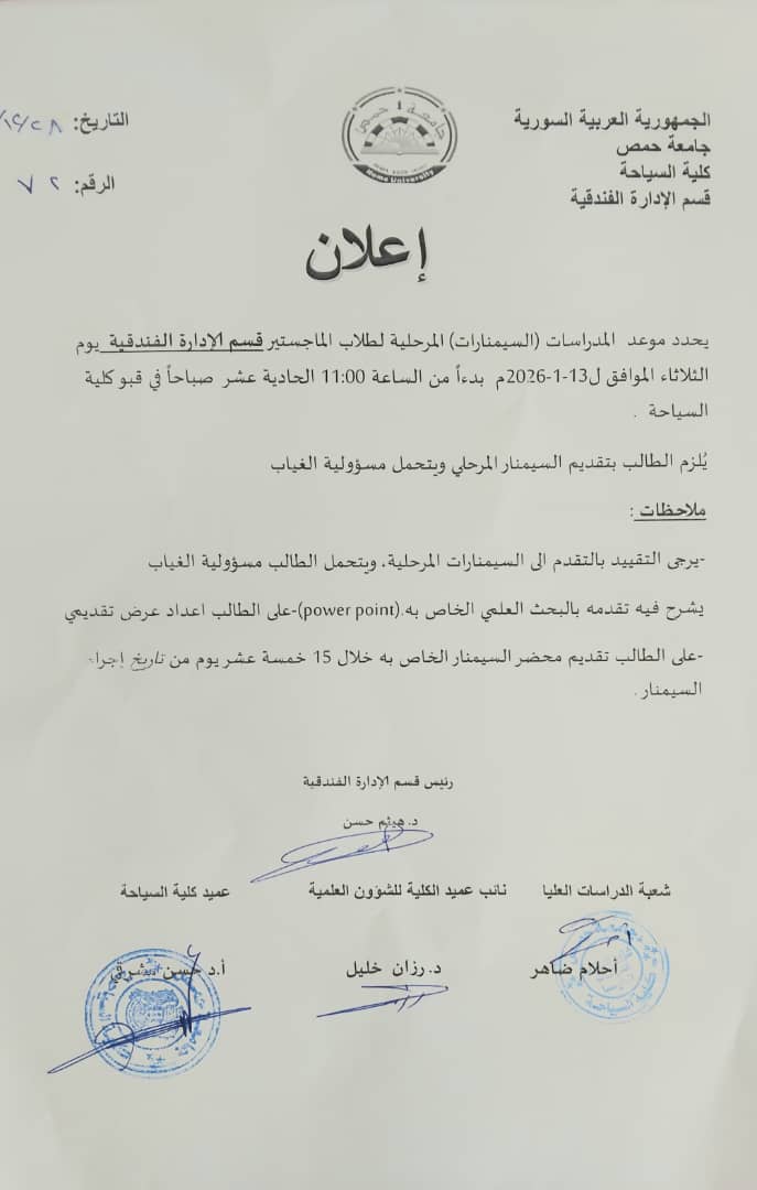 أخبار عامةإعلانات ماجستير إعلان خاص لطلاب الماجستير لقسمي السياحة والإدارة الفندقية 29 ديسمبر، 2025 485 29 ديسمبر، 2025 485