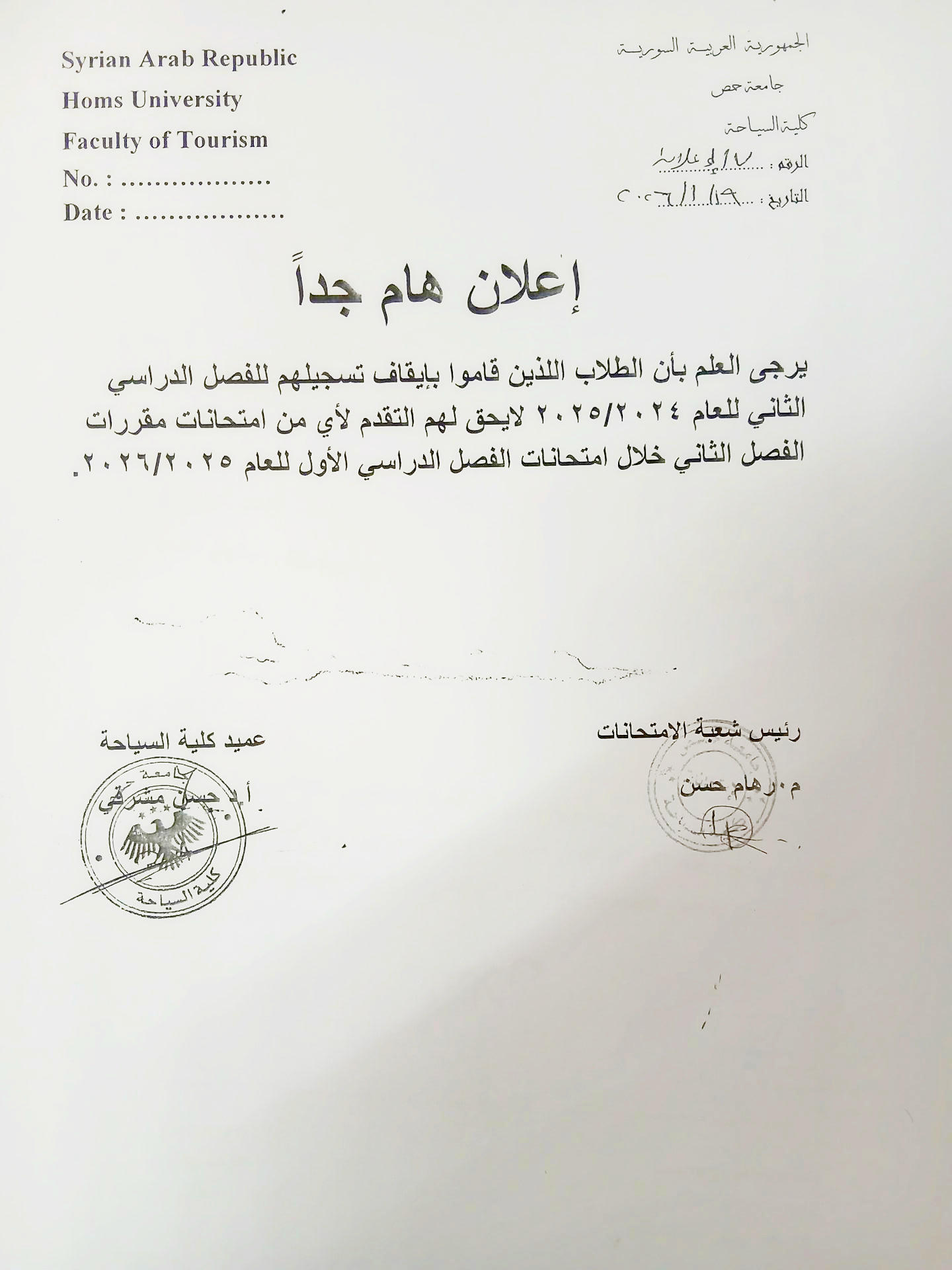 إعلان هام جداً للطلاب الذين قاموا بعمل إيقاف تسجيل الفصل الثاني عام 2024-2025